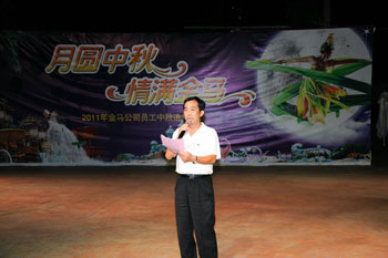 2011年9月13日農(nóng)歷八月十六晚上7:30-9:30,“月圓中秋、情滿金馬”員工中秋追月晚會以情相聚,在燈籠的點點暖光中,公司職工及家屬將近600人聚首長江水世界,在滿載金馬濃情的節(jié)目中共度追月良辰。