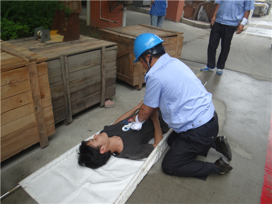 此次演練歷時(shí)半小時(shí),共分為四部分。第一部分是模擬火災(zāi)事故現(xiàn)場,救火組成員即刻切斷電源,并用水帶水槍及滅火器進(jìn)行滅火操作。第二部分是人員疏散組成員在確認(rèn)發(fā)生火警后,趕到往H棟車間各層樓梯“安全出口”處,組織疏散現(xiàn)場人員有序撤離至安全區(qū)域,保證樓道暢通,防止踩踏事故。第三部分是人員物資搶救組成員趕到三樓事發(fā)現(xiàn)場,配合救火組清理現(xiàn)場危險(xiǎn)物品,開辟防火隔離帶,救護(hù)傷員,同時(shí)采用人工呼吸法作簡單救治。第四部分是照明、通訊組成員配合其他三組負(fù)責(zé)場地照明、模擬報(bào)警、接警車,并在滅火后留現(xiàn)場繼續(xù)監(jiān)查,防止二次火災(zāi)發(fā)生。