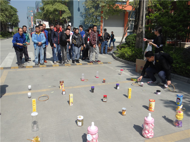 活動當天,現(xiàn)場氣氛熱鬧、喜慶、溫馨。游園會設(shè)置了豐富精彩且極具新春特色的游戲,分別有“轟炸雞—打保齡球”、“尖叫雞—過獨木橋”、“戰(zhàn)斗雞”、“套金雞”,各種主題游戲全面開放,員工自愿參與贏獎?;顒蝇F(xiàn)場,人力資源中心的同事們?nèi)栽诰牟紙鲋校阋延胁簧賳T工早早前來一探規(guī)則、試玩項目。待活動正式開始,眾員工自發(fā)有序排起了隊伍,縱使內(nèi)心迫切希望參加游戲,但仍是耐心地排隊等候,并不時為他人加油歡呼。全場活動氣氛活躍,歡樂的笑聲不絕于耳,員工參與熱情高漲,獎品不斷送出,人力資源中心的小伙伴們更是忙得不亦樂乎。