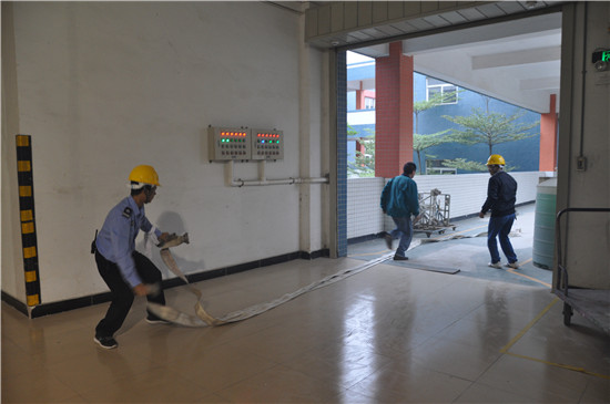 演習開始前,執(zhí)行指揮強調(diào)并要求參加演習員工須按公司消防預案,明確分工,高效且有序地實施疏散、滅火、救援等工作。隨著警報聲的發(fā)出,演習正式開始。所有參演人員在執(zhí)行指揮的任務分配下,迅速到底指定位置,相互配合,完成任務。救火組率先切斷電源,接水槍滅火;疏散組各組員按指定疏散線路組織人員有序疏散,防止踩踏事故;搶救組開辟防火隔離帶,救護傷員;通訊組模擬說明事故地址、接警車......在執(zhí)行指揮的指揮與引導下,整個演練過程既緊張、激烈,又有條不紊。
