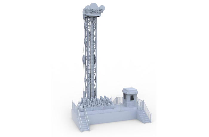 雙排青蛙跳以跳躍為主題,座艙在塔體上做上下移動,當運行到最高位置時座艙會向前傾轉(zhuǎn)約10°,令乘客體驗到失重、超重以及在高空突然前傾的多重游玩感受。