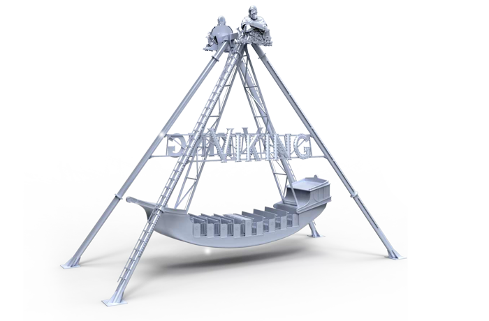 海盜船繞水平軸來(lái)回?cái)[動(dòng),模擬海盜乘風(fēng)出海的場(chǎng)景,交替而至的失重和超重感讓乘客盡情體驗(yàn)搖擺的樂(lè)趣。8排座椅,承載38人。
