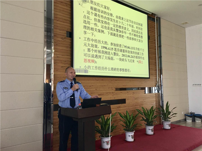 隨后由宏基派出所警官代表為新員工帶來治安法制教育,通過分享其豐富從警生涯中遇到的真實案件,講述違法犯罪的嚴重后果,警示新員工嚴格遵守國家法律犯規(guī),做合格的守法公民。接下來保安隊代表結(jié)合公司消防安全規(guī)定,通過講述消防安全的理論和實際自救與救援方法流程,普及消防知識和提高新員工消防安全防范意識。