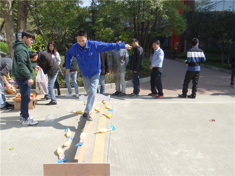 活動當天,現(xiàn)場氣氛熱鬧、喜慶、溫馨。游園會設(shè)置了豐富精彩且極具新春特色的游戲,分別有“轟炸雞—打保齡球”、“尖叫雞—過獨木橋”、“戰(zhàn)斗雞”、“套金雞”,各種主題游戲全面開放,員工自愿參與贏獎?;顒蝇F(xiàn)場,人力資源中心的同事們?nèi)栽诰牟紙鲋校阋延胁簧賳T工早早前來一探規(guī)則、試玩項目。待活動正式開始,眾員工自發(fā)有序排起了隊伍,縱使內(nèi)心迫切希望參加游戲,但仍是耐心地排隊等候,并不時為他人加油歡呼。全場活動氣氛活躍,歡樂的笑聲不絕于耳,員工參與熱情高漲,獎品不斷送出,人力資源中心的小伙伴們更是忙得不亦樂乎。
