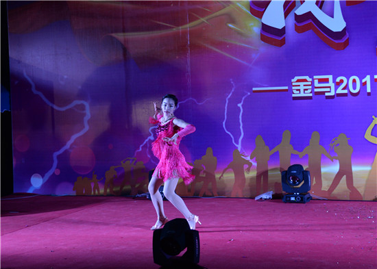 晚會(huì)在當(dāng)日18:30準(zhǔn)時(shí)開始,近300名金馬人有序齊聚臺(tái)下,一卸工作的疲累,放松精神,歡樂暢談,縱享小食。一開始是前期迎春文體系列活動(dòng)的頒獎(jiǎng)表彰環(huán)節(jié),籃球、羽毛球、桌球、乒乓球、越野、攀巖等各項(xiàng)活動(dòng)獲獎(jiǎng)代表分別從頒獎(jiǎng)?lì)I(lǐng)導(dǎo)手中接過獎(jiǎng)狀和獎(jiǎng)金,喜悅之情溢于言表。隨后,文藝匯演正式開始,瞬時(shí)音樂響起,燈光閃爍,全場(chǎng)目光齊刷刷地射向舞臺(tái)。喜慶洋洋的“恭喜發(fā)財(cái)”率先登臺(tái),來自機(jī)械車間的6名員工將濃濃的年味散播至現(xiàn)場(chǎng)每一個(gè)角落;開料車間創(chuàng)意策劃編排的“大王叫我來巡山”舞蹈完美融合生肖吉祥物寓意,打造出一個(gè)“眾猴拱雞”的趣味舞臺(tái);來自玻璃鋼車間王曉玲的一首“映山紅”以其游刃有余的高聲調(diào)震撼全場(chǎng);精益部的“ 鞋釘”小品雖僅2人登臺(tái),卻憑借生動(dòng)形象的人物塑造與演出征服了臺(tái)下評(píng)委與觀眾... ...匯演中場(chǎng)雖時(shí)有毛毛細(xì)雨拂起,但像雨像霧又像風(fēng)的感覺為演出現(xiàn)場(chǎng)平添了一絲韻味,增添了一份浪漫的氣息,整場(chǎng)表演更是可謂精彩紛呈、引人入勝。