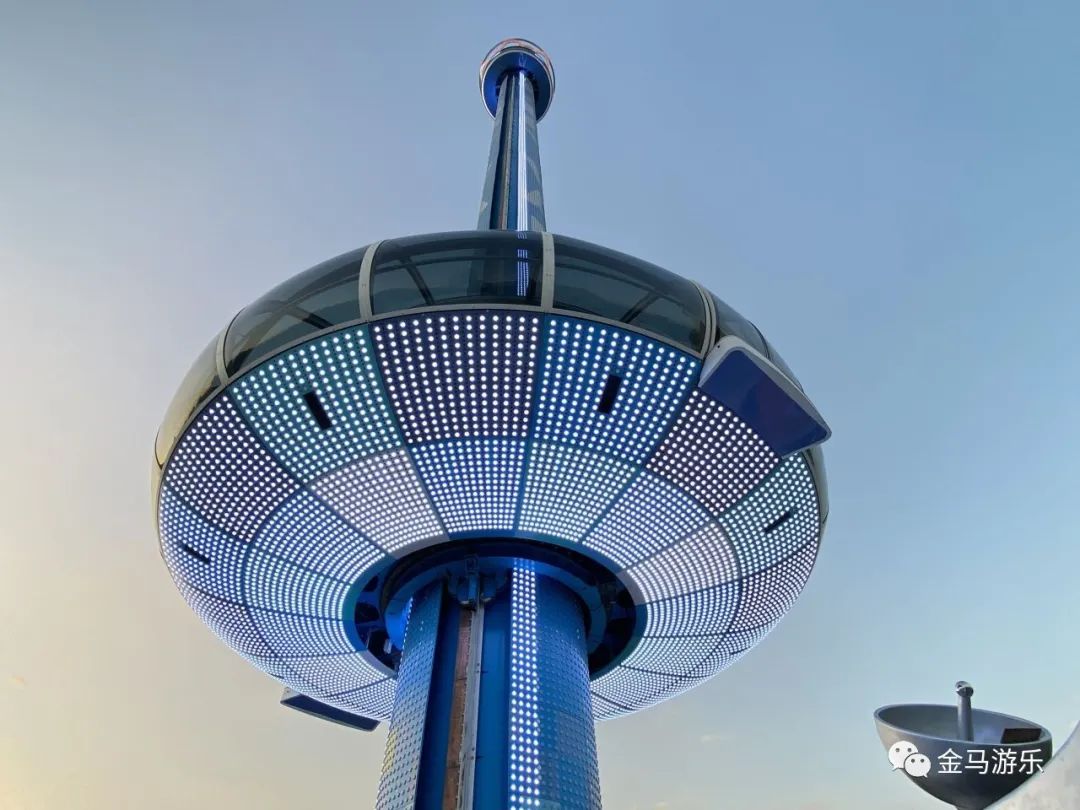 隨著“迷你世界·冒險山”的開放,深圳歡樂谷與金馬游樂攜手打造的地標項目——全景式高空觀景塔”星空之環(huán)”亦正式亮相。“星空之環(huán)”豎立在冒險山山頂,有著65米高的圓柱塔體,極具未來感的艙體,夜幕中的百變燈效以及全天候360°絕美觀景享受,使其成為園區(qū)日夜閃耀的明星。