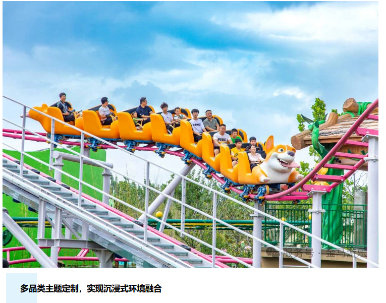 小型過山車“柯基跑跑車”則以萌趣造型和僅1米的身高要求,吸引低齡兒童踏上滑行冒險之旅。孩子們可在起伏軌道中穿梭,盡情享受歡樂時刻。