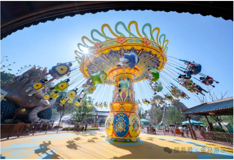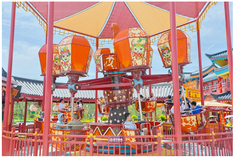 在資陽方特國色春秋中,摩天輪、自控飛機、跳傘塔、太空梭、海盜船等十余款游樂設(shè)備,均由金馬游樂進行主題化外觀定制。憑借規(guī)模領(lǐng)先的專業(yè)技術(shù)團隊與成熟的定制服務(wù)體系,金馬從數(shù)字化設(shè)計、建模,到國際水平的工藝制作,全程把控,最終實現(xiàn)藝術(shù)級主題呈現(xiàn),強化設(shè)備與園區(qū)主題環(huán)境的深度融合,營造出高品質(zhì)的沉浸式游樂氛圍。