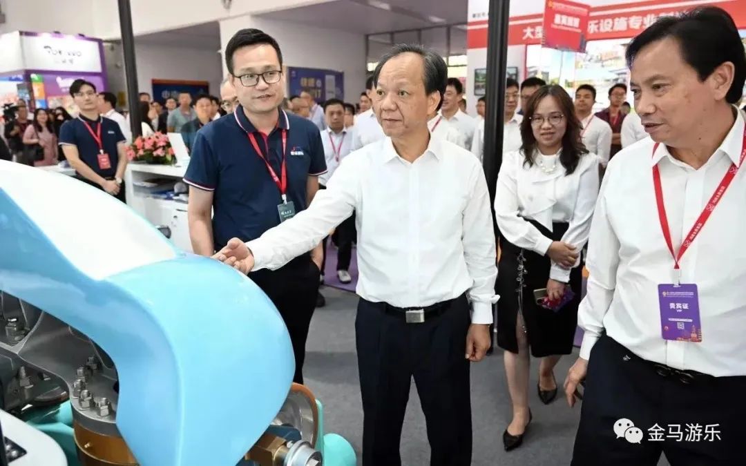 開幕式后,中山市委書記、市人大常委會主任郭文海一行領(lǐng)導(dǎo)蒞臨金馬游樂展位參觀指導(dǎo)。