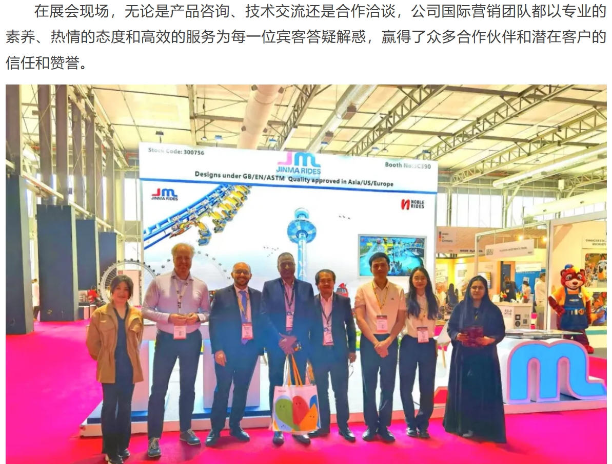 中東市場具有獨特文化和消費習(xí)慣,公司將根據(jù)市場特點進(jìn)一步優(yōu)化產(chǎn)品設(shè)計和服務(wù)方案,以更加貼合當(dāng)?shù)匦枨蟮挠螛费b備產(chǎn)品和解決方案力求取得更大突破,持續(xù)深耕中東市場。同時,公司也將以此為契機(jī),進(jìn)一步加大全球市場拓展力度,期待與全球客戶攜手合作,共同開創(chuàng)游樂裝備行業(yè)的美好未來。