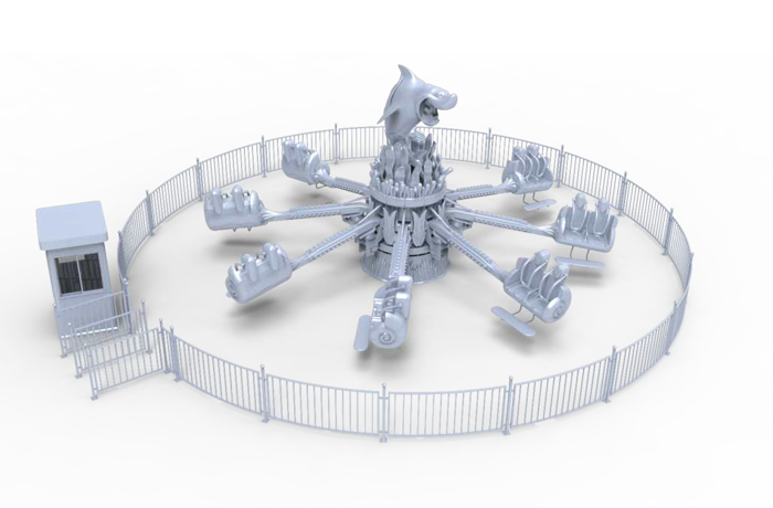 瘋狂海螺以海螺為主題造型,通過?平轉(zhuǎn)動(dòng)與座艙上下擺動(dòng)的?式,讓乘客體驗(yàn)失重與超重的刺激,同時(shí)產(chǎn)??種翩翩起舞的感覺,游玩過程?由歡快。