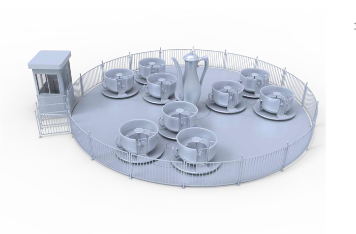 轉(zhuǎn)轉(zhuǎn)杯設(shè)備是由軌道、大盤、小盤及杯體組成,美食主題外觀,乘客坐在杯中體驗(yàn)多重復(fù)合轉(zhuǎn)動(dòng)所帶來(lái)的旋轉(zhuǎn)樂(lè)趣。