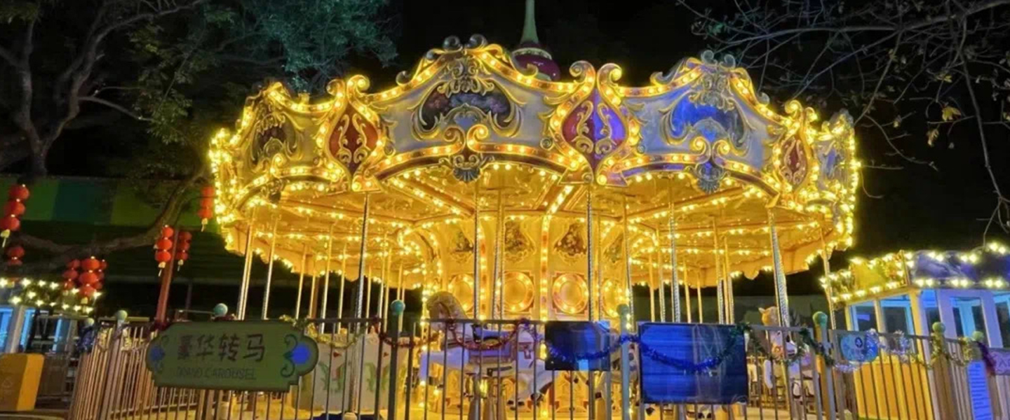 豪華轉(zhuǎn)馬采用歐洲皇家古典豪華的裝飾風(fēng)格,頂棚華麗,內(nèi)外圍板鑲嵌著彩色浮雕和絢爛彩燈,馬匹及宮庭式馬車結(jié)合多彩的花飾,造型精致小巧。