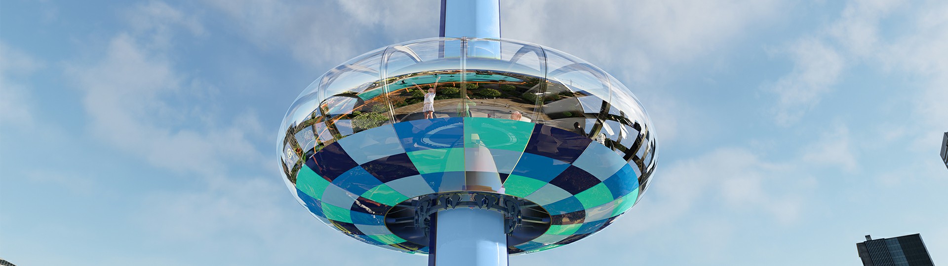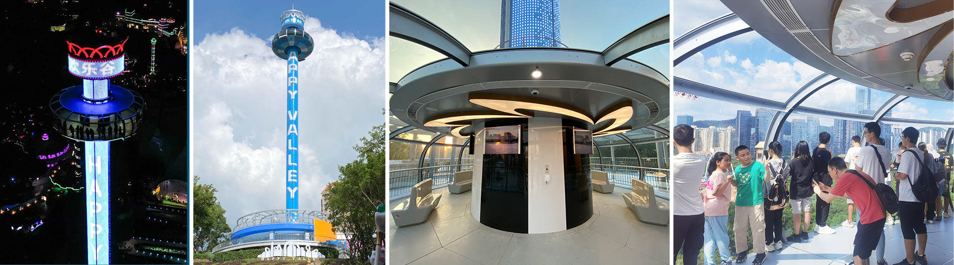 觀景塔擁有可容納100人的“甜甜圈”旋轉(zhuǎn)艙體,載客能力強(qiáng)。雙自動門進(jìn)出口的設(shè)計(jì)便于快速上下客,運(yùn)營高效。乘客在旋轉(zhuǎn)艙中360°環(huán)繞式縱情飽覽四周美景,還可通過艙內(nèi)影音系統(tǒng)感受多元視覺盛宴。夜幕降臨燈光閃耀,璀璨奪目輕易打造夜場焦點(diǎn),成為聚客地標(biāo)。