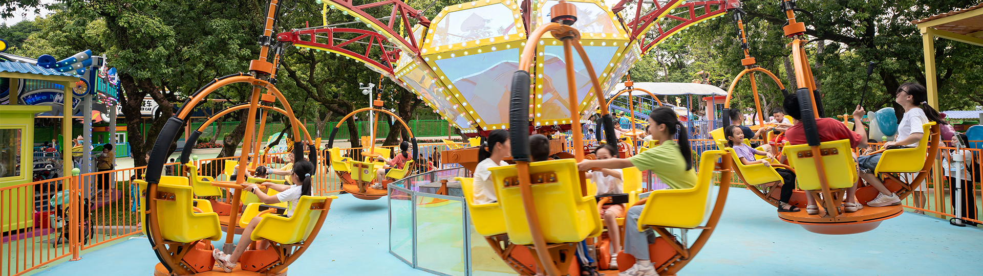 魔幻光輪,以魔幻?戲的撲克為主題,游客靜靜蟄伏在圍欄?的,如同躲進卡牌?的?丑伺機?動。只要你坐進它的圓環(huán),它就會旋轉(zhuǎn)起舞,我們還可以?圓環(huán)中的輪盤控制??的轉(zhuǎn)速。每個?童??都曾經(jīng)住著?個可愛的?丑,他是孩?們的開?果。設備包裝主題與玩法相互結合,讓游客體驗?翔的歡樂!