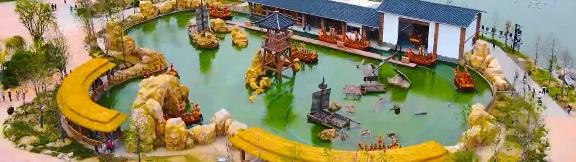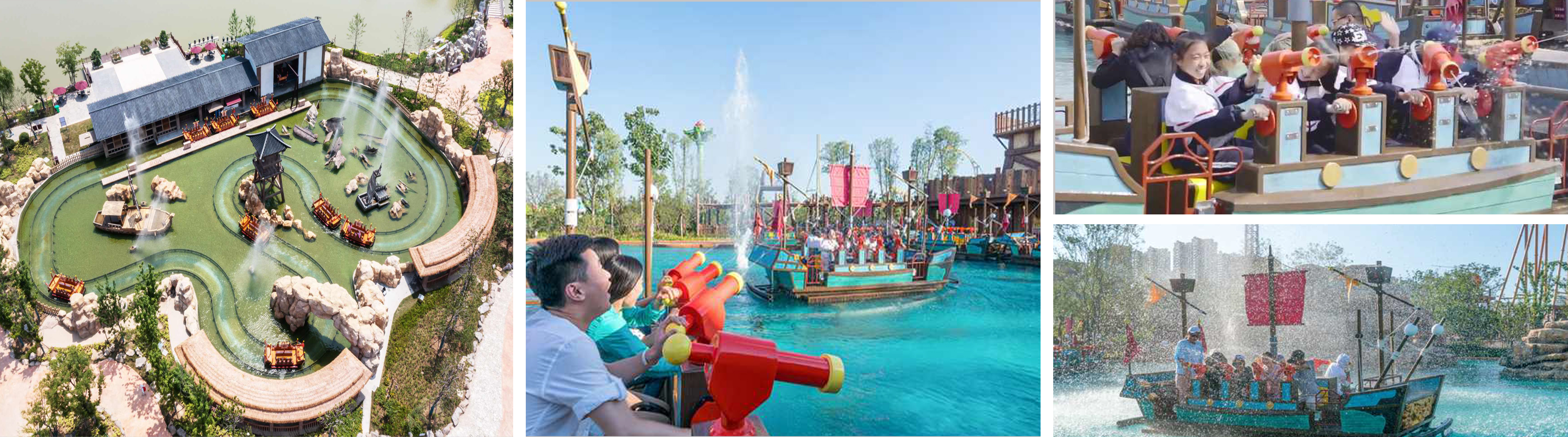 射水戰(zhàn)船是船體自帶超大蓄電池,通過螺旋槳推動(dòng)船體運(yùn)行。乘客在乘坐戰(zhàn)船過程中可使用射水槍向其它戰(zhàn)船上的乘客進(jìn)行射水,也可與周邊游客進(jìn)行射擊互動(dòng)??啥ㄖ苽€(gè)性化主題造景,增強(qiáng)互動(dòng)效果。