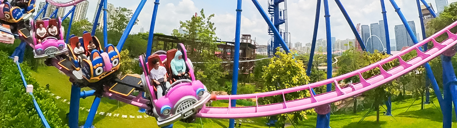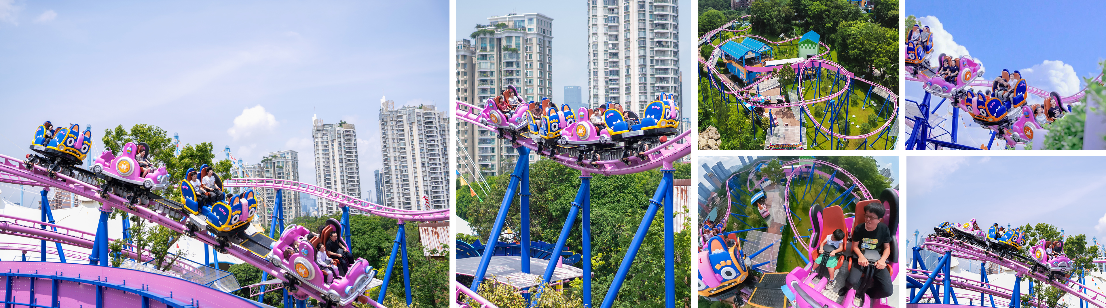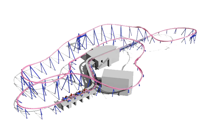 列式自旋滑車為家庭式自旋滑車,采用LCM電磁彈射驅(qū)動,雙彈射段結(jié)合自旋車體,暢享多重游玩體驗(yàn)。列車瞬時彈射出發(fā),高速奔馳進(jìn)入上升彎道沖上坡頂,緊接著通過S形轉(zhuǎn)彎到達(dá)半空進(jìn)入第二段彈射。第二次彈射將乘客送到軌道制高點(diǎn),再螺旋下降。過程中自旋車體自由旋轉(zhuǎn),歡樂加倍。