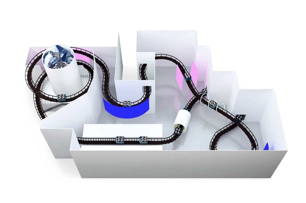 互動軌道?是?款室內(nèi)休閑游樂設(shè)備,將3D交互游戲和過??兩種元素有機(jī)結(jié)合,乘客在游玩過程中既能體驗(yàn)3D?體的主題視覺效果,?能體驗(yàn)過??刺激,還互動參與激烈的射擊競賽,是?款新穎的架空游覽?項(xiàng)?。