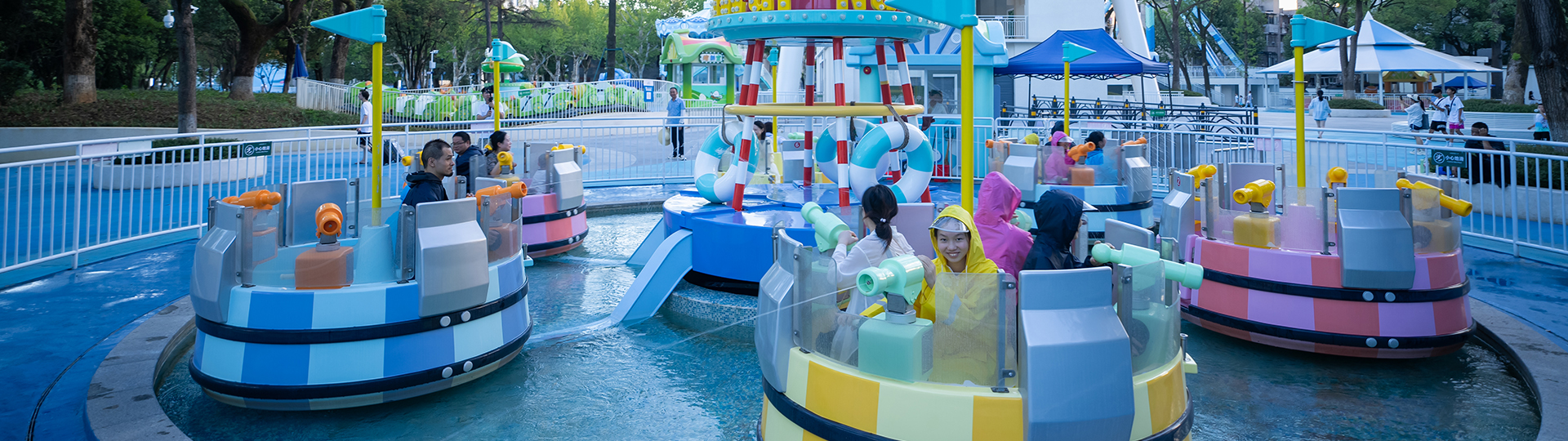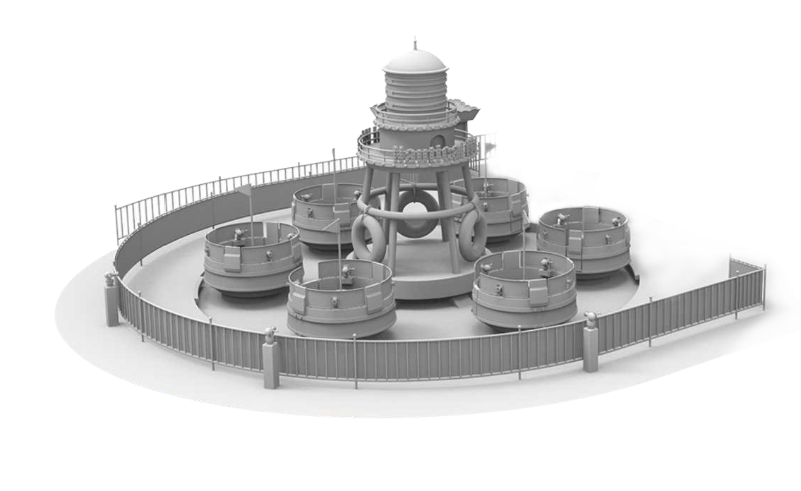 航海?戰(zhàn)是以海洋?戰(zhàn)為主題的轉(zhuǎn)?類親?設(shè)備。巧妙利?中?燈塔回轉(zhuǎn)?撐連接轉(zhuǎn)臂帶動(dòng)艙體公轉(zhuǎn),同時(shí)圍繞艙體??中?軸線順時(shí)針和逆時(shí)針交替旋轉(zhuǎn);每個(gè)船艙設(shè)有4個(gè)?槍,各船之間可參與海戰(zhàn)與“?槍?”互相射擊,使在巨浪旋轉(zhuǎn)中的親?海戰(zhàn)更加激烈有趣。