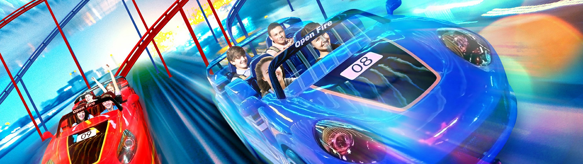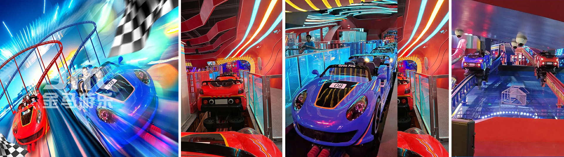 競速賽車,是一款自帶動力的雙軌過山車。實現了雙車在雙軌道上的加速,急剎,轉彎,高低起伏等,巧妙地與聲、光、電相結合,時速高達40.0km/h,使乘客搖身一變賽車手,體驗在炫酷賽道上馳騁追逐的速度與激情
