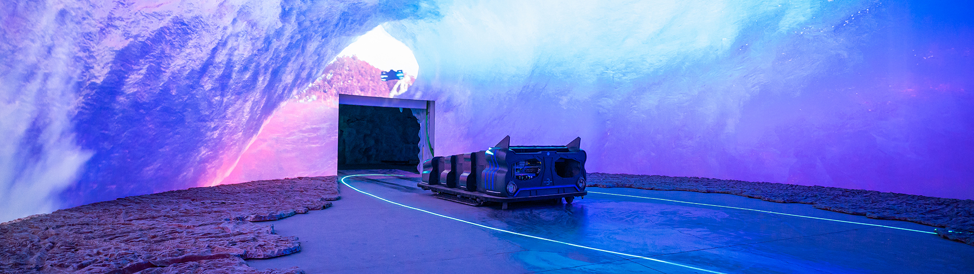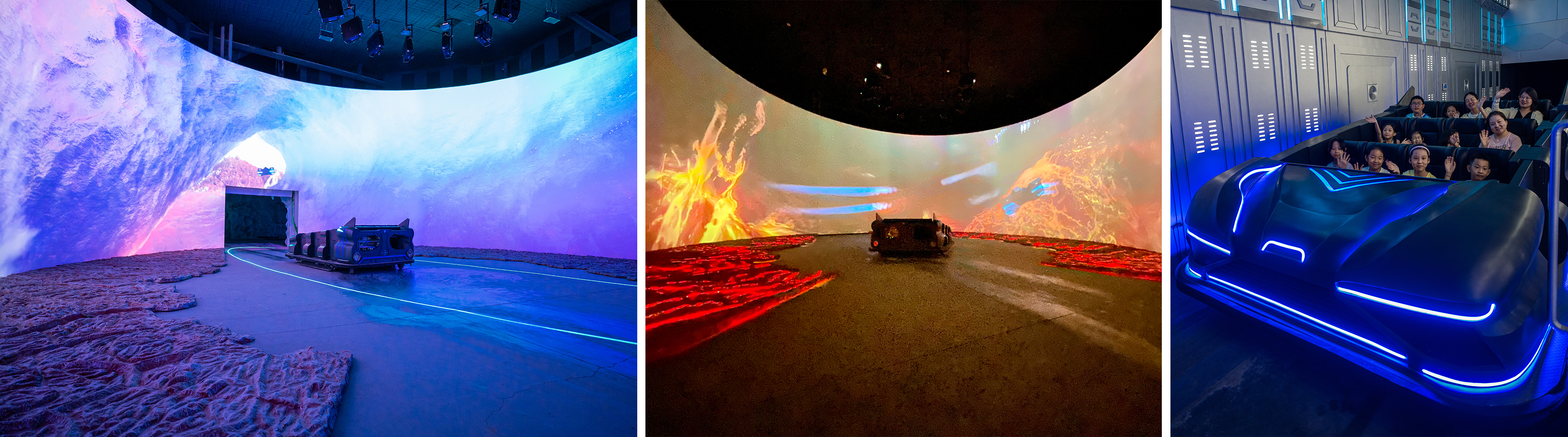 有別于傳統(tǒng)黑暗乘騎項(xiàng)目,擺脫傳統(tǒng)的軌道系統(tǒng),采用激光測(cè)距定位技術(shù),讓游客乘坐在無軌游覽車內(nèi),沿著既定故事路線進(jìn)行靈活穿梭體驗(yàn),充滿趣味刺激感。